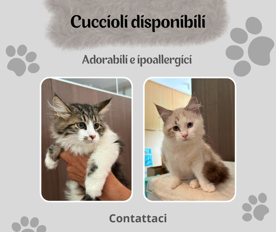 Sono disponibili splendidi cuccioli di Gatto Siberiano, di carattere dolce, affettuoso e familiare.